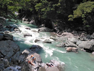 帰り道、ジップライン発見!こんな渓谷を(ノ゚ο゚)ノ オオオオ!!凄い所をすっ飛んでいったわ(爆)。*黄色の〇が人。