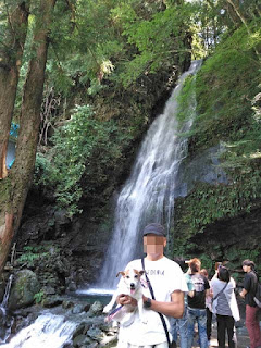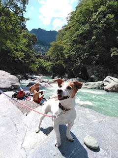 茶屋の近くから川に降りられたので下りてみた。大雨や台風の影響!?水も増水してたし流れもあったのでケイトは泳がせられず。川岸をぴちゃぴちゃ水遊び♪
